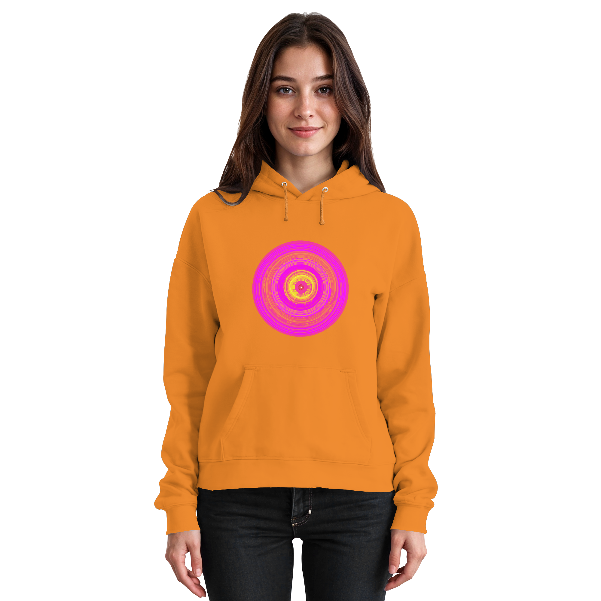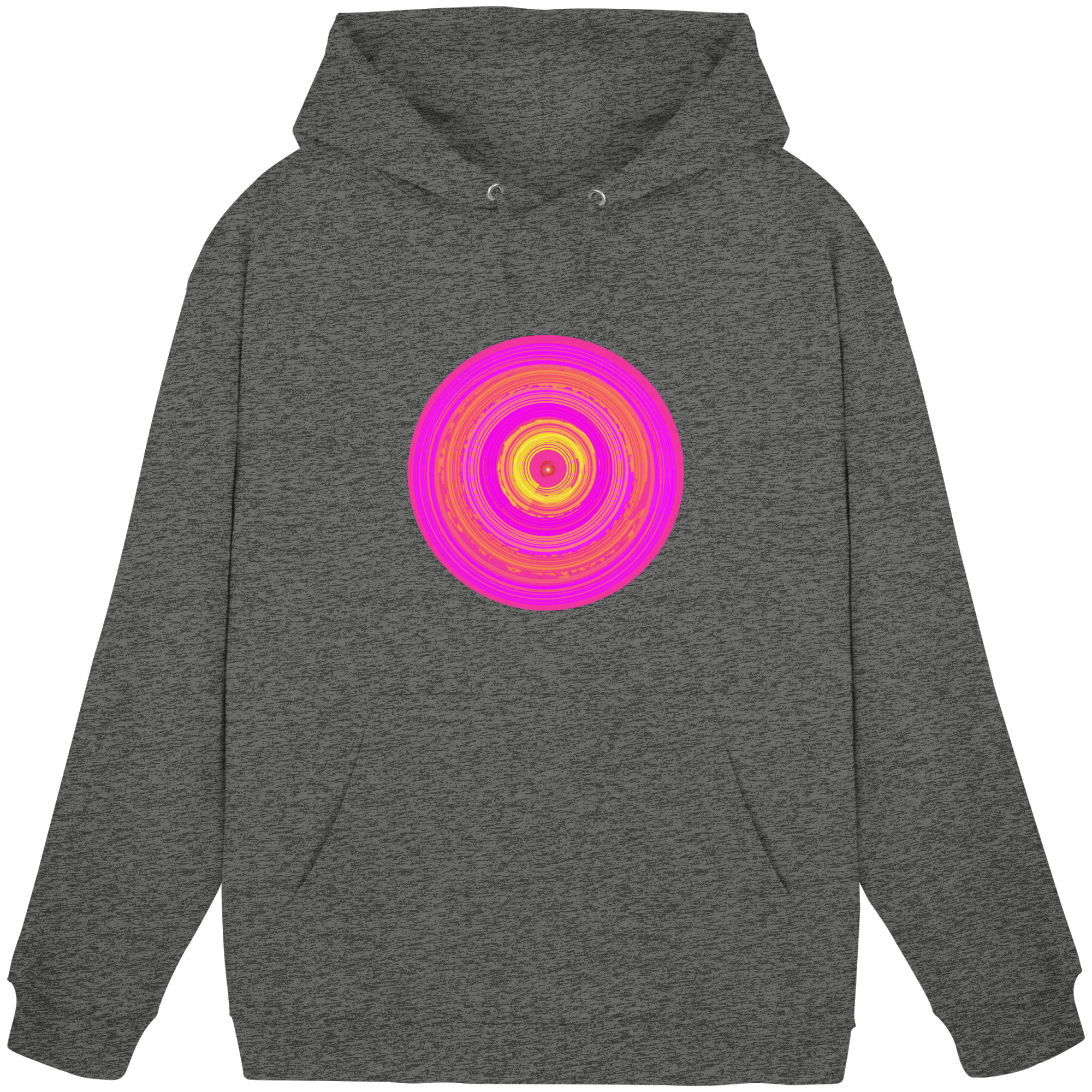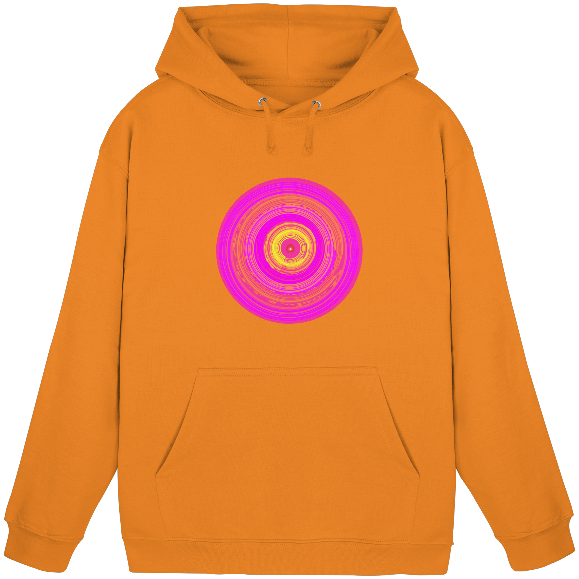 „Sunwheel“ ist ein Sinnbild innerer Strahlkraft. Der knallig-pinkfarbene Kreis steht für Herzensenergie und kreative Kraft mit orange-gelbem Sonnenwirbel.